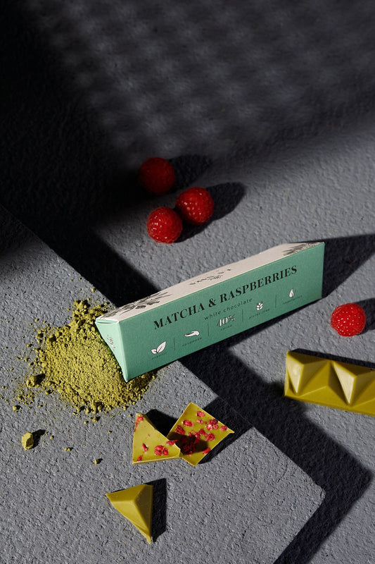Bean-To-Bar milk chocolate bar with matcha & raspberries