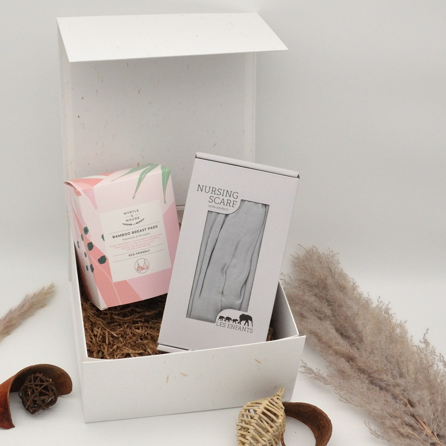 Borstvoeding geven kan stressvol en overweldigend zijn, zeker in de eerste paar weken na de geboorte. Deze borstvoeding geschenkdoos werd met de grootste liefde en zorg samengesteld om nieuwe mama's te ondersteunen bij allerhande problemen die gepaard gaan met borstvoeding.