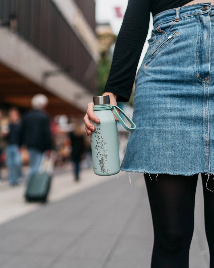 Gemaakt van hoogwaardig 18/8 roestvrij staal van voedingskwaliteit, volledig BPA-, en loodvrij, en afgewerkt met een poedercoating voor een stevige, zweetvrije grip. De fles heeft bovendien een antislipbodem en een siliconen draaglus, zodat je ze makkelijk overal mee naartoe neemt.