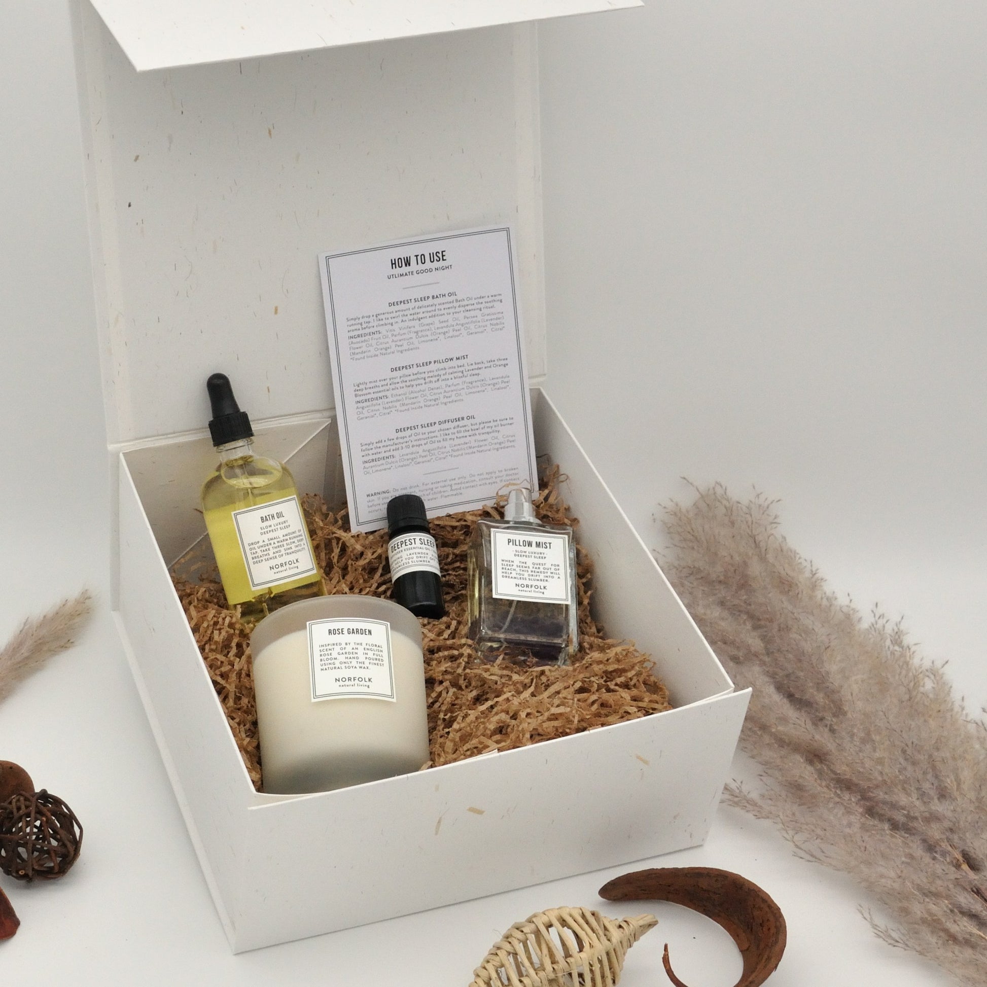 • Ultimate Good Night - Deepest Sleep wellness set: Zeker in het laatste trimester van de zwangerschap kan het soms moeilijk worden om goed de slaap te vatten. Dit heerlijk luxueus trio is ontworpen om te helpen ontspannen en om makkelijker in een rustige slaap te vallen. De set bevat Badolie 100 ml, Diffuser olie 10 ml, Pillow Mist 50 ml.